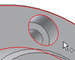 Typ umieszczenia Koncentrycznie pozwala na określenie położenia połączenia gwintowego przez wybranie jednej lub kilku krawędzi kołowych. Otwór dla połączenia gwintowego jest umieszczany w środku okręgu zdefiniowanego przez krawędź liniową.