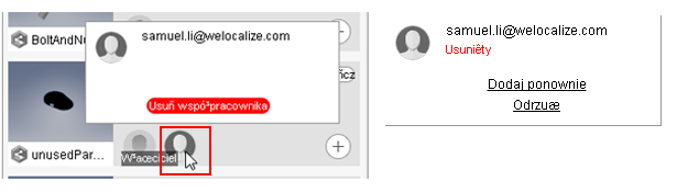 - Usuwanie współpracowników: Ustaw kursor na nazwie współpracownika. Kliknij przycisk Usuń współpracownika.