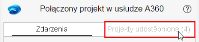 znajdujący się w prawym dolnym rogu okna graficznego. Na panelu Projekty udostępnione w usłudze A360 wyświetlana jest domyślnie karta Zdarzenia. Wybierz kartę Projekty udostępnione.