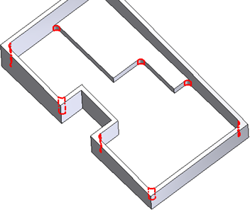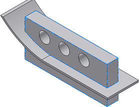 Można wybrać zestaw krawędzi, które nie są dołączone do elementu, aby zwiększyć elastyczność reguł, oraz wykluczyć niektóre krawędzie, które mogłyby powodować awarię elementu kształtującego zaokrąglenie regułowe.