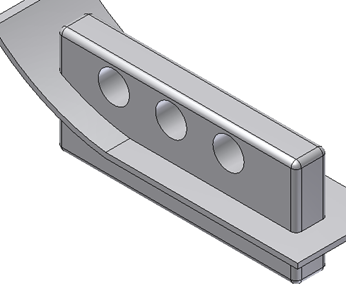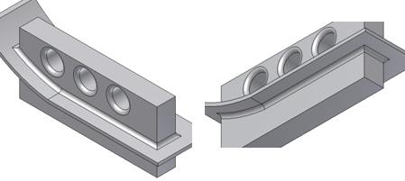 - Względem elementów, tylko krawędzie stworzone przez przecięcie elementów ze zbioru źródłowego i elementów ze zbioru zakresu będą zaokrąglane. Na przykład w przypadku, gdy w zbiorze zakresu są trzy otwory.