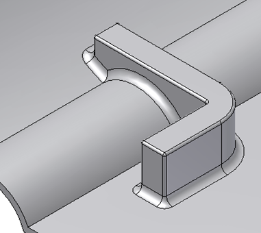 - Wszystkie krawędzie, wszystkie krawędzie stworzone przez elementy oraz przez przecięcie elementów z bryłą części są zaokrąglane.