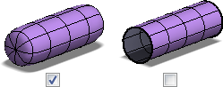 - Zaznacz opcję Nakryty, aby utworzyć zamkniętą bryłę walca. Usuń zaznaczenie pola wyboru, aby utworzyć otwartą bryłę walca.
