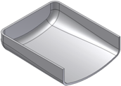 Przed rozpoczęciem należy utworzyć lub zaimportować część cienkościenną. Należy umieścić element kominka na okrągłej krawędzi w położeniu, które nie jest odpowiednie w przypadku stylu umieszczania Na szkicu. Na przykład wybierz punkt na krawędzi, w którym kierunek haka najprawdopodobniej nie będzie dopasowany do osi X lub Y szkicu. Stwórz elementy konstrukcyjne. Stwórz jeden punkt szkicu i jeden element konstrukcyjny 3D, w których potrzebne są kominki.