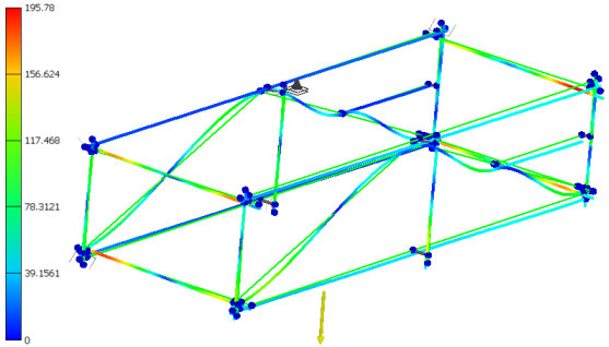 W węźle przeglądarki Wyniki dostępne są różne węzły wyników. Można przeglądać wyniki Sił, Momentów, Normalnych naprężeń, Naprężeń ścinania i Naprężeń skręcanych. Wyniki analizy modalnej można przeglądać w folderze Modal Frequency.