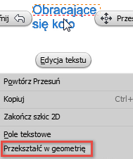 - Kliknij tekst na rysunku prawym przyciskiem myszy i wybierz polecenie Przekształć w geometrię.