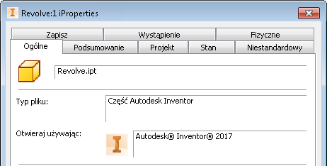 - Plik części można zapisać i ponownie otworzyć w dowolnej instalacji programu Inventor o tej samej wersji.