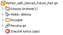 Ten proces roboczy umożliwia utworzenie odniesienia do przyszłej wersji pliku części programu Inventor w pliku części.