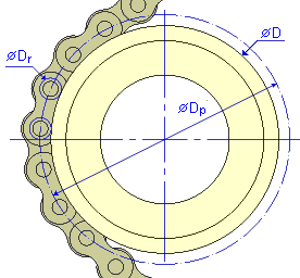 Algorytm obliczania długości łańcucha wykorzystuje średnice podziałowe kół. Średnica podziałowa dla każdego koła napędowego łańcucha rolkowego lub koła pośredniego jest uzyskiwana z poniższych równań.