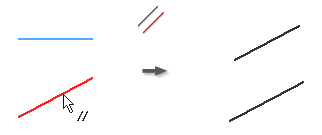 Wiązanie równoległe umożliwia równoległe ustawienie względem siebie wybranych linii lub osi elips. W szkicu 3D opcja Równolegle jest dostępna w przypadku geometrii szkicu, osi, płaszczyzn, uchwytów splajnów lub wybranej geometrii modelu.
