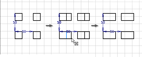 Korzystając z poleceń Szyk można tworzyć szyki geometrii szkicu. Geometria szyku jest całkowicie związana, a wiązania są zachowywane jako grupa. Po usunięciu wiązania szyku wszystkie wiązania geometrii szyku zostaną usunięte.