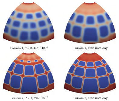 Za pomocą Generatora kształtów jesteśmy w stanie odtworzyć opublikowany wynik. Mimo iż znaczna część wyników zgadza się z opublikowanymi, na dolnej krawędzi półkuli występują pewne istotne różnice. W wyniku uzyskanym w Generatorze kształtów pozostaje tylko cienka warstwa materiału w miejscu, gdzie stosowane są warunki graniczne. Opublikowane wyniki wskazują znacznie szersze pasmo materiału wokół dolnej krawędzi półkuli. Opublikowane wyniki również wskazują pewne różnice w grubości pasma materiału, prawdopodobnie w wyniku zastosowania symetrii warunków obwiedni.