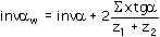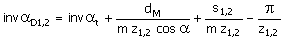 W 1,2 = ((z w - 0.5) π + z 1,2 inv α t ) m cos α) + 2 x 1,2 m sin α gdzie: |