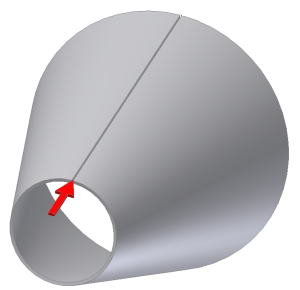 - W przypadku rozdarcia w jednym punkcie wykorzystywany jest pojedynczy punkt na krawędzi powierzchni. Wybrany punkt może być punktem środkowym na krawędzi, punktem końcowym na wierzchołku powierzchni, punktem konstrukcyjnym lub punktem szkicowanym z poprzednio utworzonego szkicu.