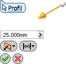 Minipaski narzędzi są wyświetlane w obszarze rysunku blisko wybranego obiektu w oknie graficznym. Zapewniają one szybki dostęp do często używanych poleceń, opcji i przycisków umożliwiających potwierdzanie lub anulowanie bieżącej operacji. Menu rozwijane przycisku obejmują również opcje poleceń.