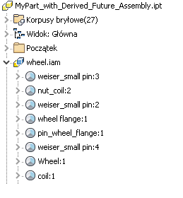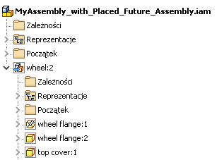- W przeglądarce jest wyświetlane odniesienie do przyszłego pliku. Węzły komponentu są inne niż natywnych komponentów programu Inventor.