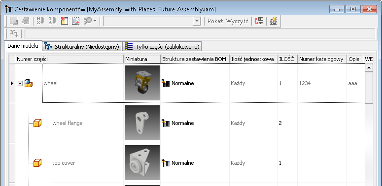 - Właściwości iProperty przyszłych części są dostępne.