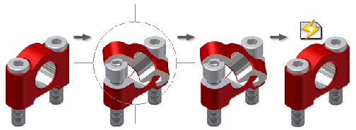 Ruch mechaniczny można symulować za pomocą sterowania zależnościami, używając w tym celu sekwencji czynności. Po zdefiniowaniu wiązania komponentu lub dodaniu do niego połączenia można użyć polecenia sterowania zależnością, aby uruchomić animację ruchu za pomocą przyrostowego zmieniania wartości wiązania. Przykładowo, można obracać komponent, sterując wiązaniem kątowym w zakresie od 0 do 360 stopni. Polecenie sterowania zależnością można stosować tylko do jednej zależności, ale można sterować dodatkowymi zależnościami, używając polecenia Równania, aby utworzyć algebraiczne zależności pomiędzy zależnościami.