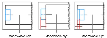 Zazwyczaj, element męski zamka montowany jest na dolnej powierzchni górnej płyty. Element żeński zamka montowany jest na górnej powierzchni dolnej płyty. Przed zamontowaniem zamka wewnętrznego, określ powierzchnię bazową, Odniesienie 1, Odniesienie 2, oraz wskaż, czy zamek wewnętrzny ma się obracać.