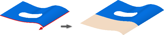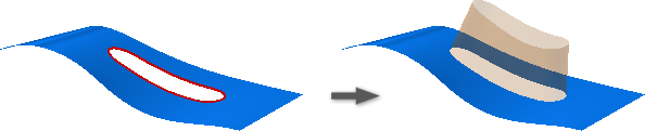 Za pomocą funkcji Zamknięcie obwiedni na podstawie zamkniętego szkicu 2D, zamkniętej granicy lub połączenia obu form można utworzyć powierzchnię płaską lub 3D. Zamknięcia domyślnie spełniają warunek kontaktu (G0), lecz mogą zawierać warunki brzegowe styczności (G1) lub gładkości (G2) zastosowane do każdej krawędzi modelu.