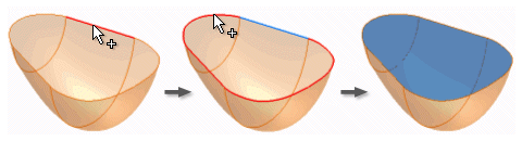 Użyj obu krawędzi modelu i szkiców, aby zdefiniować granicę. Po wskazaniu zamkniętej krawędzi, zostanie zdefiniowany i wyróżniony w oknie graficznym region. Jeśli podgląd jest włączony, podgląd również istnieje.