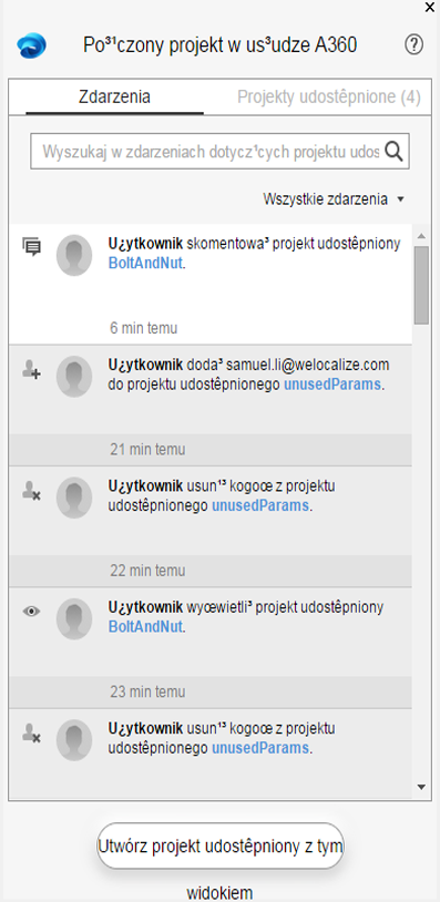 Projekty udostępnione są kopią 3D widoku modelu 3D przeznaczoną tylko do odczytu, który został otwarty podczas tworzenia projektu udostępnionego.