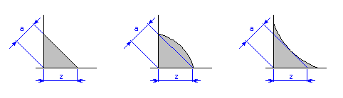 Czynna wysokość (grubość) spoiny kątowej określana jest na podstawie wysokości największego trójkąta równobocznego wpisanego w przekrój spoiny bez penetracji. Na poniższej ilustracji przedstawiono projekty różnych spoin.