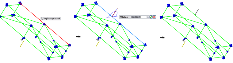 - Określać wiązania. Wybierz belkę lub węzeł, aby określić pochodzenie. Użyj znaczników lub okien dialogowych do określenia pochodzenia i wartości, takich jak Wielkość lub Kąt w płaszczyźnie.