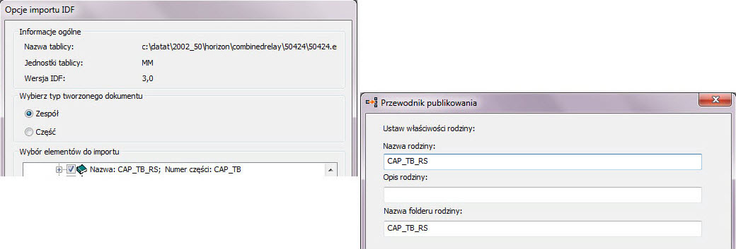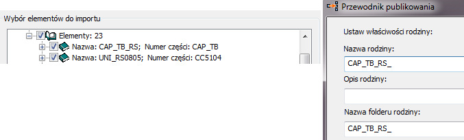 Uwaga: Jeśli co najmniej jeden z tych znaków istnieje w nazwie komponentu w oryginalnym zestawie danych IDF, zastąp nieprawidłowy znak znakiem „_” (podkreślenie) w polu Nazwa rodzina podczas publikowania komponentu w bibliotece IDF Content Center. Po zastąpieniu niedozwolonego znaku w polu Nazwa rodziny znakiem „_” komponent IDF zostanie ponownie użyty podczas otwierania zestawu danych IDF z tą nazwą komponentu.