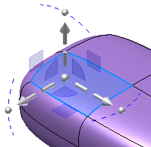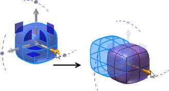 Uwaga: Można użyć polecenia Kopiuj, aby skopiować bryłę swobodną. Podczas wklejania skopiowanej geometrii w środowisku kształtu swobodnego jest ona wklejana na górze geometrii źródłowej. Nowa geometria jest wybrana i są aktywne uchwyty manipulatora. Przesuń skopiowaną geometrię, aby oddzielić ją od źródła.