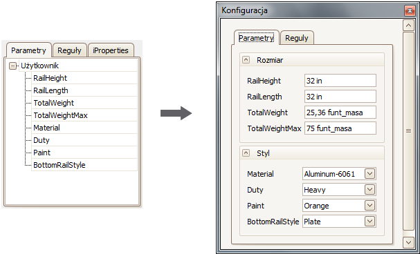 Po uruchomieniu reguły iLogic odczytuje i pobiera wartości dla tych parametrów z modelu do reguły. Po zakończeniu działania reguły iLogic zapisuje zmienione wartości z powrotem w modelu.