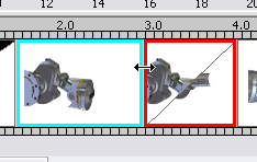 - Aby równocześnie zmienić czas trwania dla obiektów przylegających do siebie na osi czasu, wybierz jeden z nich i zaznacz pozostałe. Umieść kursor nad granicą pomiędzy obiektami na osi czasu, a następnie kliknij i przeciągania, aby zmienić czas trwania dla obu obiektów.