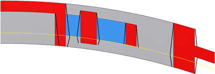 - Obwiednia. Określa zamknięty zakres kratki wentylacyjnej. Wybór profilu obwiedni pośrednio wyznacza kierunek kratki wentylacyjnej zgodnie z kierunkiem z profilu środka masy do najbliższego punktu części, wzdłuż płaszczyzny normalnej profilu. Profil obwiedni jest niezbędny do utworzenia kratki wentylacyjnej.