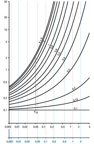 wartość graniczna F a / F r dla zastosowalności różnych wartości współczynników X i Y |