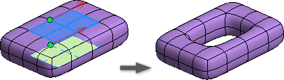 W ostatnim przykładzie wybrano powierzchnie po przeciwnych stronach samej bryły, aby utworzyć otwór.