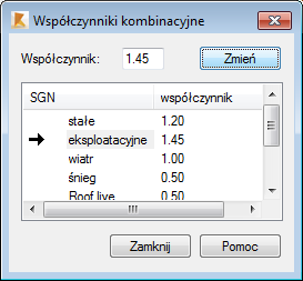 Zostanie otwarte okno dialogowe Współczynniki kombinacji.