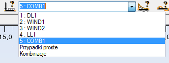 Kombinacja obciążeń COMB1 została dodana do listy zdefiniowanych przypadków obciążeń.