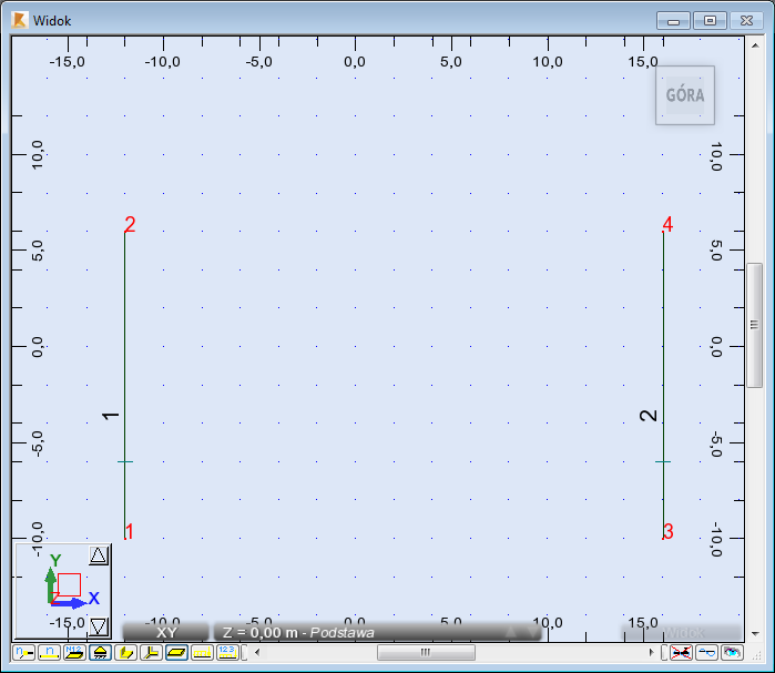 Powiększ wszystko), aby lepiej wizualizować zdefiniowane słupy.