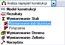 Na standardowym pasku narzędzi rozwiń menu Układy i wybierz opcję Wymiarowanie stali/aluminium, jak pokazano poniżej:
