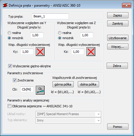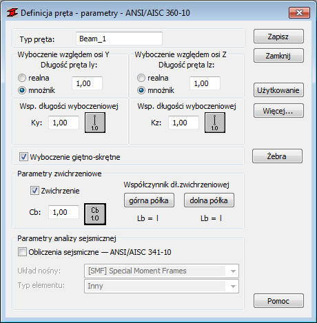 Powtórz czynności opisane w punktach 6 i 7 dla parametru Współczynnik długości wyboczeniowej Z.