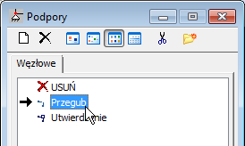 W oknie dialogowym Podpory kliknij dwukrotnie opcję Przegub (jak pokazano poniżej), aby otworzyć okno dialogowe Definicja podpory.