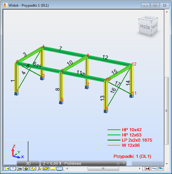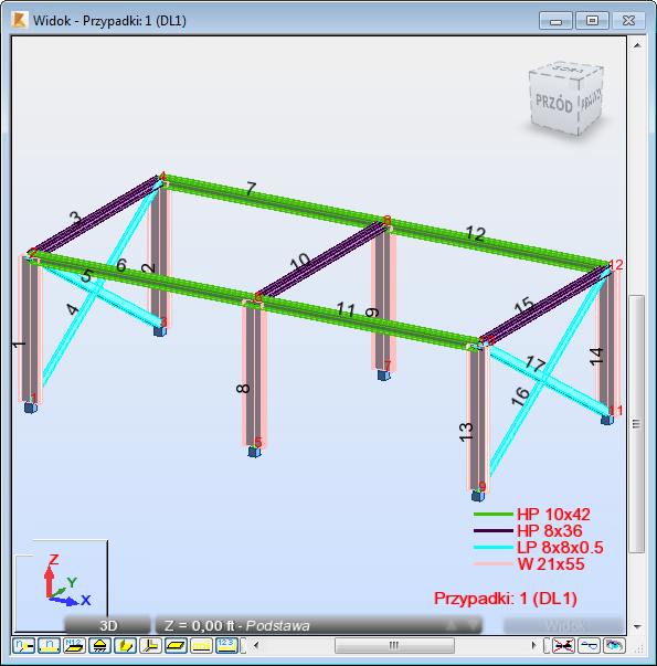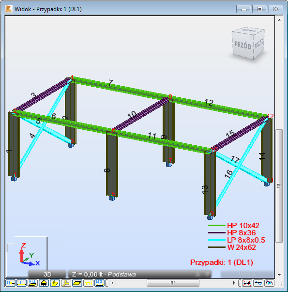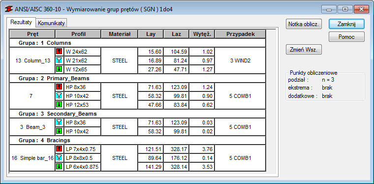 Uwaga: Podczas procesu wymiarowania program znajduje lżejsze przekroje dla słupów.