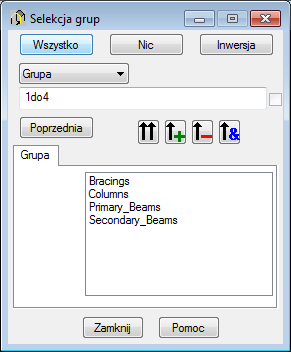 Zostanie otwarte okno dialogowe Wybór grupy prętów.
