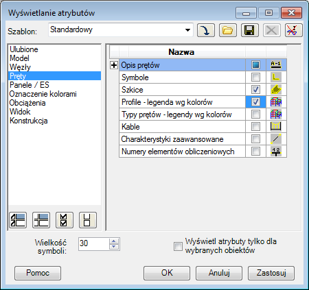 Wybierz kolejno opcje Pręty, Przekroje — legenda wg kolorów, a następnie kliknij przycisk OK.