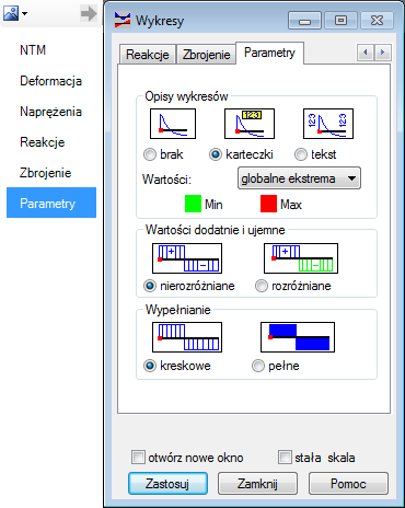 Wyświetlanie wyników dotyczących belek w postaci graficznej