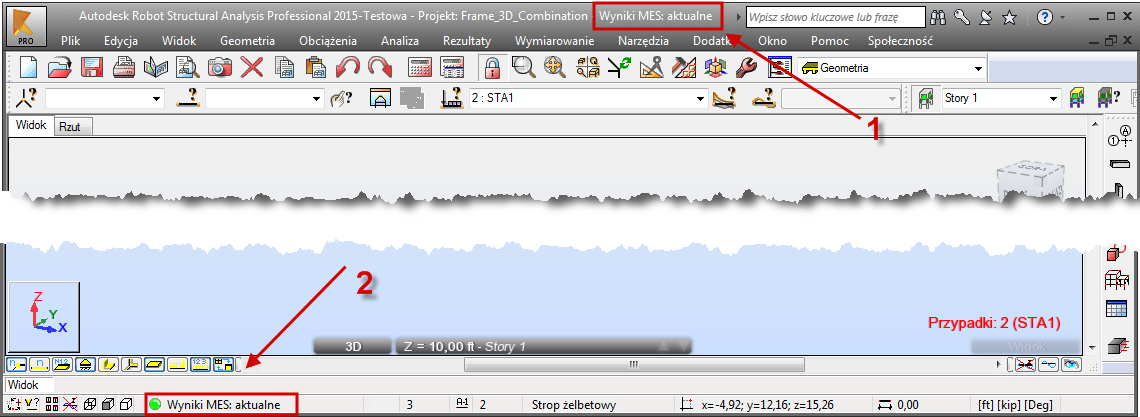 Po zakończeniu obliczeń wyświetlana jest informacja: Wyniki (MES) są dostępne: