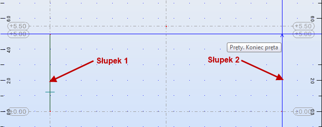 Aby narysować wszystkie słupki, kliknij na osi konstrukcyjnej pierwszy i ostatni węzeł, które zostały zdefiniowane wcześniej.