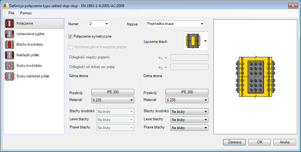 - Określ, czy nakładki środników mają być mocowane za pomocą śrub czy spawane.