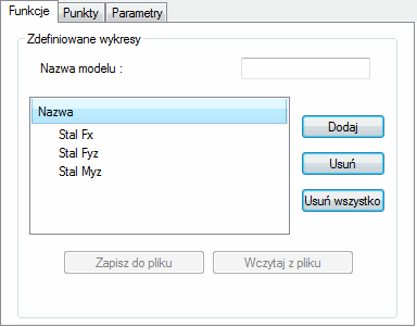 Klawisze Zapisz do pliku i Wczytaj z pliku pozwalają na zapis lub odczyt całego modelu przegubu (krzywa oraz jej parametry) z/do zewnętrznych plików.