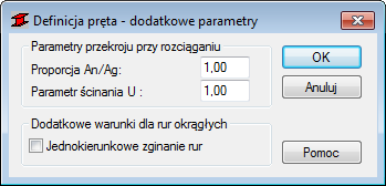 Okno dialogowe służy do określenia dodatkowych parametrów normowych pręta stalowego.